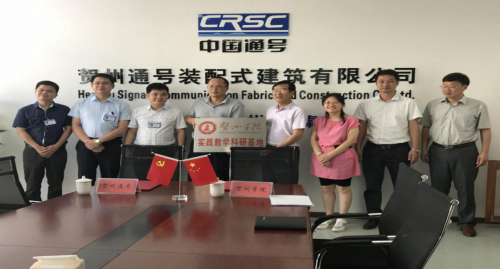 6月1日10:00,建筑工程学院与贺州市通号装配式建筑有限公司的校企合作签约仪式和教学实践基地挂牌仪式在通号公司会议室举行。我院党总支书记陈勇、副院长黄小灵、学术带头人田建冬博士,通号公司董事长刘丰收、总经理柳国忠、副总经理何荣勤等出席了本次签约仪式。