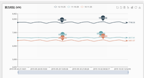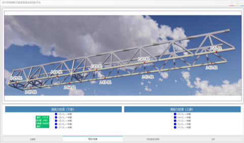 在线监测系统功能:实时索力显示功能;历史索力对比、实际索力与设计索力对比;安全预警;传感器异常检测;索力发展趋势预测(图9)。